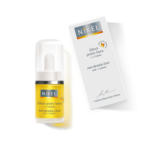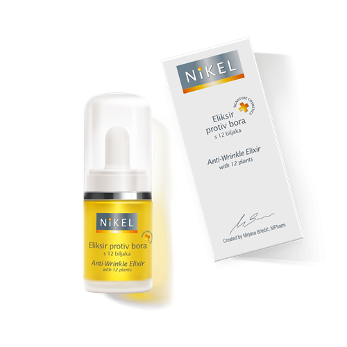 Ovaj NiKEL proizvod žene jednostavno obožavaju, a zbog izvanrednog učinka prozvan je Zlatni eliksir! Ovaj biljni koncentrat za dubinsku njegu lica, vrata i dekoltea sadrži čak 8 obnavljajućih hladno prešanih biljnih ulja i 4 biljne esencije za intenzivnu regeneraciju i anti-aging njegu. Njegova jedinstvena formula sa sinergijskim  djelovanjem esencijalnih ulja smilja, mirte, slatke naranče i mandarine te hladno prešanih biljnih ulja jojobe, gospine trave, masline, nevena, pasiflore, suncokreta, badema i prirodnog vitamina E iz pšeničnih klica, savršen je spoj izvornih prirodnih sastojaka za izvanredan učinak i užitak!